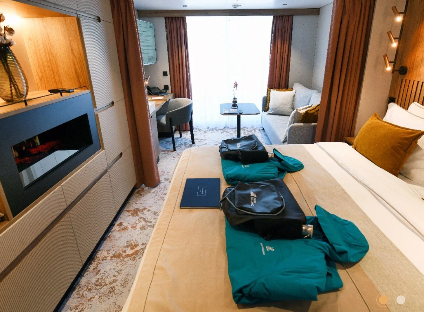 - Comfortable, well‑appointed cabins with thoughtful storage for expedition gear; each cabin welcomes you with a bottle of Champagne (and there’s also free Wi-Fi, personal safe, and a pair of Nikon binoculars to help you watch out for wildlife!